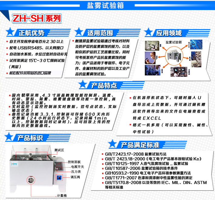 正航鹽霧試驗箱是采用鹽霧腐蝕的方式來檢測被測樣品的分別耐腐蝕的可靠性,鹽霧是指大氣中由含鹽微小液滴所構成的彌散系統(tǒng),是人工環(huán)境三防系列中的一種,很多企業(yè)產(chǎn)品需模擬海洋周邊氣候對產(chǎn)品造成的破壞性,所以鹽霧試驗箱應運而行。鹽霧試驗分為中性鹽霧和酸性